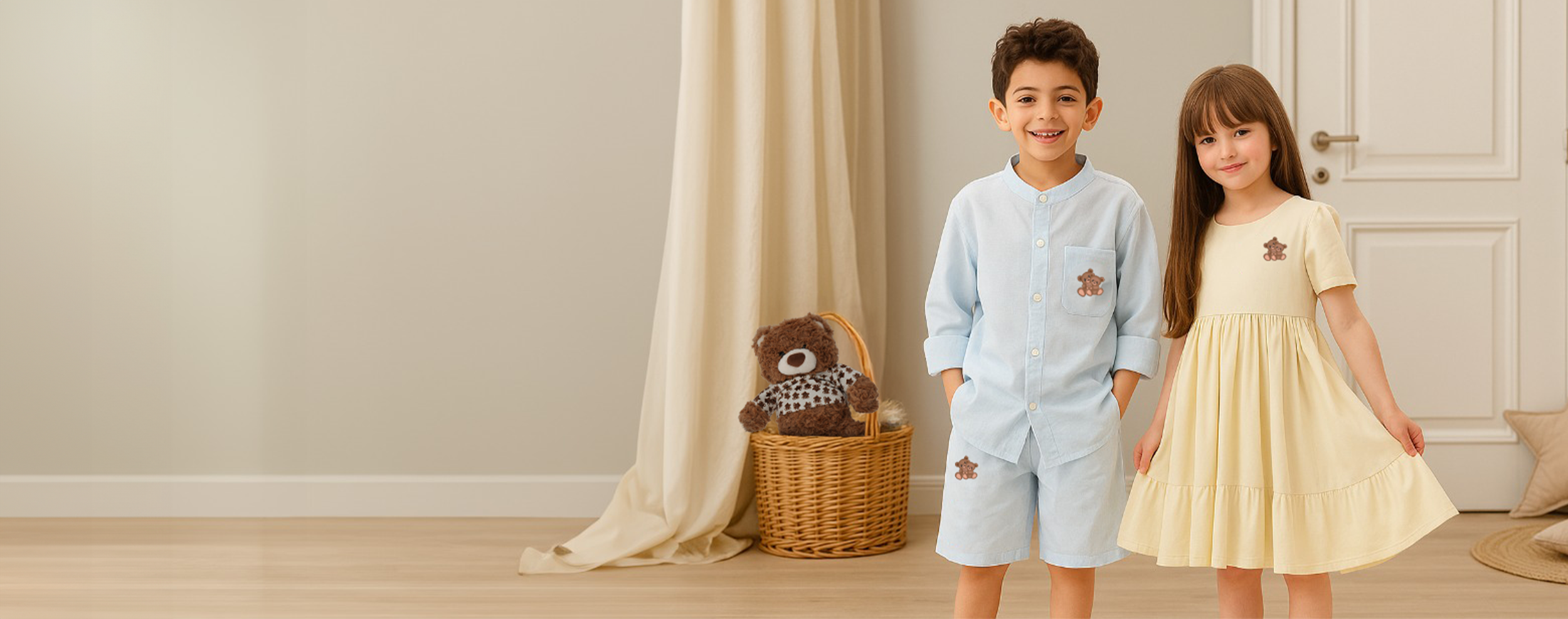 تشكيلة واسعة من هدايا ملابس اطفال أنيقة وقطع أساسية تناسب جميع المناسبات وتلائم الحياة اليومية لأطفالك.